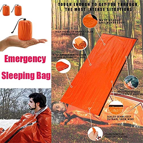 ☛ Houd warm onder extreme omstandigheden: survival bag is gemaakt van mylar materiaal met een scheur- en lekbestendige coating, zodat hij bestand is tegen extreme omstandigheden. Ze kunnen worden gebruikt om onderkoeling te voorkomen en tegen te gaan door warmteverlies uit het lichaam van een persoon te verminderen, om gewonde slachtoffers te dekken om schokken te verminderen. Noodslaapzak is gegarandeerd, niet gemakkelijk te scheuren, goede waterdichte prestaties, sterke windbestendigheid, sterke isolatieprestaties