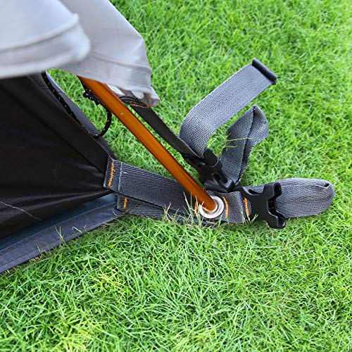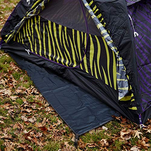 Eenvoudig in gebruik: gewoon uitvouwen en op de grond leggen; gebruik haringen en tentstokken (niet inbegrepen) om het zeil door de vier metalen ogen te fixeren.