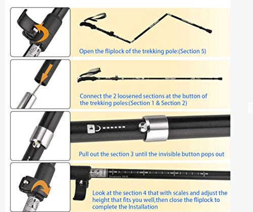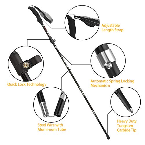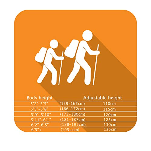 Telescopisch en verstelbaar: de stang is eenvoudig in lengte aan te passen voor uw ideale hoogte. Wandelstokken kunnen worden aangepast van 110 cm tot 135 cm, kunnen voldoen aan de behoeften van mensen van verschillende hoogtes.