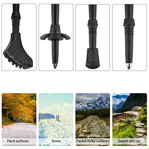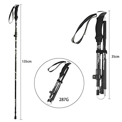 Opvouwbare drievoudige wandelstokken: hij weegt slechts 287 g en kan worden ingeklapt tot een draagbare 35 cm, zodat je ze gemakkelijk in je rugzak kunt stoppen, gemakkelijk op te bergen en mee te nemen op reis. Daarnaast bieden wij ook een nylon draagtas voor u om uw trekkingstokken te beschermen.