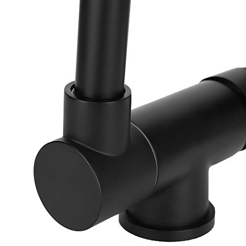 【Draaibaar ontwerp】: de kraanuitlaatslang heeft een roterend ontwerp, dat 90 graden op en neer en 360 graden naar links en rechts kan worden gedraaid, wat niet alleen handig is voor dagelijks gebruik, maar ook de watertank kan reinigen. Geschikt voor keuken, caravan, jacht, badkamer, klein van formaat, maar flexibel in gebruik