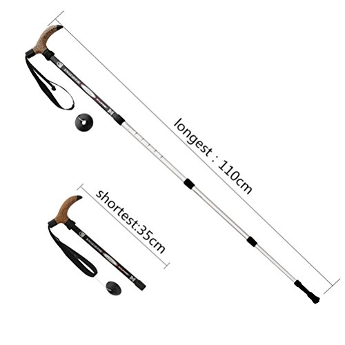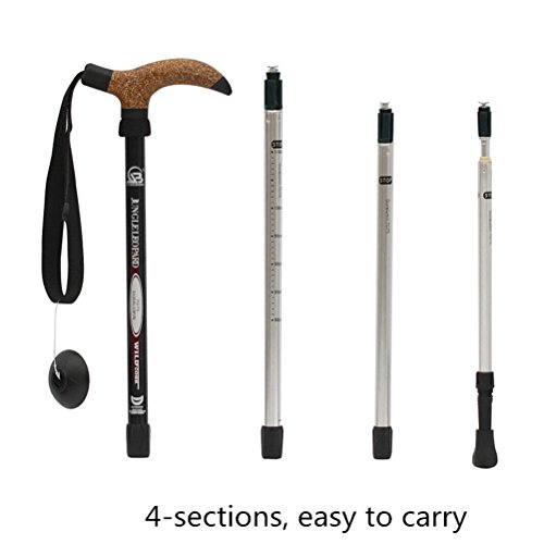 Aanpasbare lengte (ca. 50 tot 110 cm); het kortste gedeelte is 35 cm lang. Ergonomische kurkgreep met een antislip, aangenaam natuurlijk en warm oppervlak. Verlengde, lichtgewicht en antislip zacht houten handvat. Gemaakt van een robuuste en lichtgewicht aluminiumlegering.