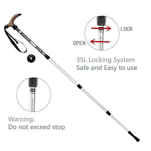 Specification: KRY Bergstok/wandelstok, T-vormige handgreep, intrekbaar, van luchtvaart-aluminiumlegering, verstelbare telescoopstang…