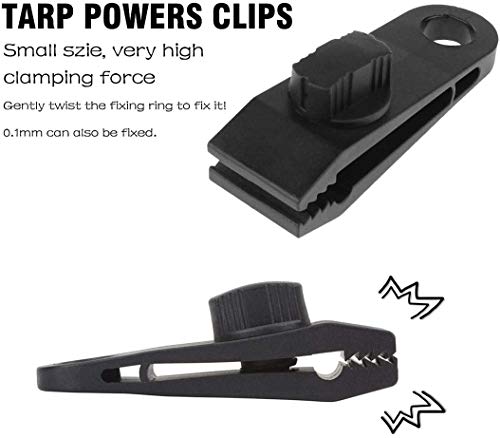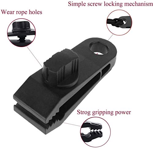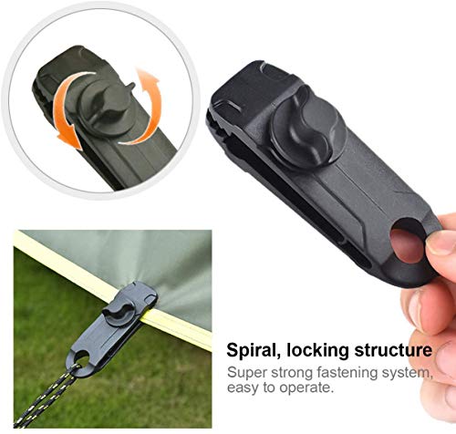 [Eenvoudig te gebruiken] Klem de stof gewoon vast met een clip en draai vervolgens de afsluitbare schroefgesp op de gewenste sterkte, handig om het zeil te bevestigen