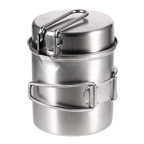 Deze roestvrijstalen pot is duurzaam en handig voor kamperen, wandelen, backpacken, trekking, picknick etc.