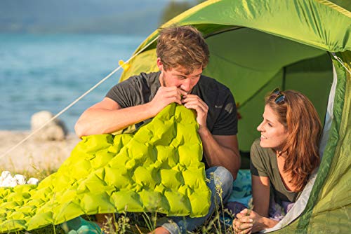 Snel en eenvoudig: door het kwaliteitsventiel is het opblazen van het luchtbed met 8-10 keer blazen zonder pomp in enkele seconden gedaan, net als het weglaten van de lucht en het opbergen in de meegeleverde draagzak.