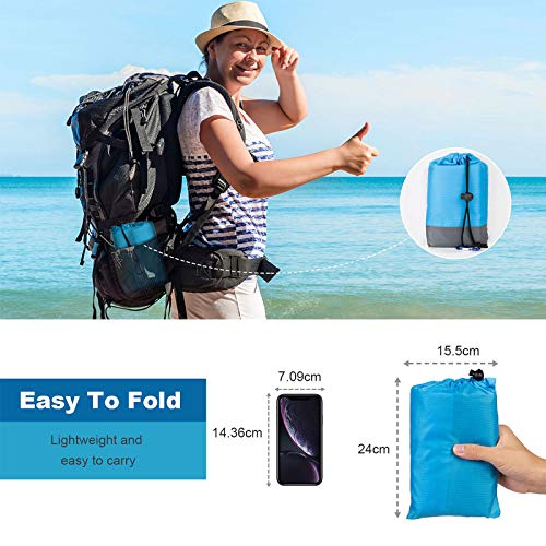 Draagbaar: De grootte van de tas is 12*8*16cm/4.7*3.2*6.3IN, die slechts een beetje groter is dan de gewone mobiele telefoon.De strandmat weegt slechts 0,32KG. Picknickmat wordt geleverd met een karabijnhaak