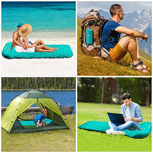 GROOT & WATERDICHT: 74 x 23 inch groot formaat zorgen voor uw comfort, ongeacht of u rug, buik of zijslaper bent. Gemaakt van 40D nylon met TPU-coating KO-polyester en betere prestaties in waterdicht, luchtdichtheid, slijtvast en scheurvast, zonder problemen te gebruiken op grasland / woestijn / kust / sneeuwland en zal niet gemakkelijk lekken. Waterdicht materiaal, houdt vocht buiten en houdt je de hele nacht warm.