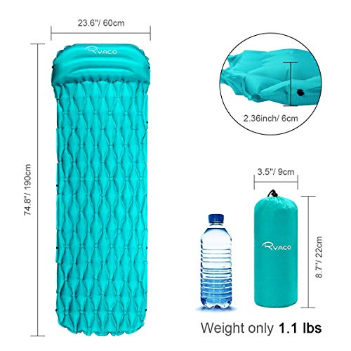 Specification: Ryaco Luchtmatras, draagbaar, ultralicht, opblaasbaar, isomat met hoofdkussen, voor camping, outdoor, wandelen, strand