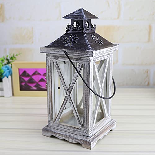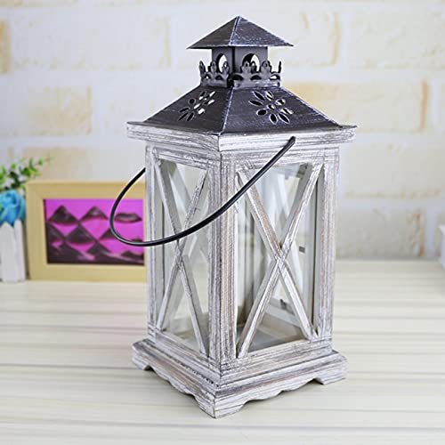 Specification: Winddichte Houten Handheld Kandelaar Opknoping Decoratieve Retro Lantaarn Kaars Shelter voor Home Garden