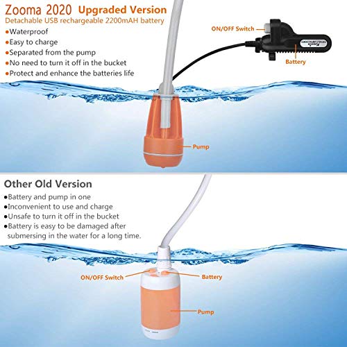 ▶ Upgraded-versie: wordt geleverd met een afneembare oplaadbare USB-batterijen (2200 mAh), die van de pomp gescheiden zijn. Externe aan/uit-functie, een verbetering ten opzichte van het vorige ontwerp. De batterijen hoeven niet in water te worden ondergedompeld, waardoor de levensduur van de batterijen wordt beschermd en de levensduur kan worden verlengd.