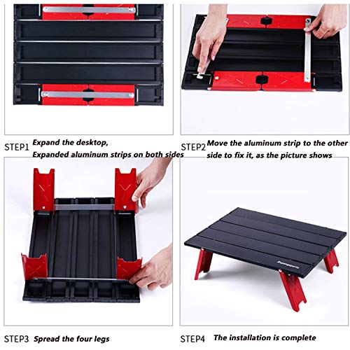 zyeziwhs Ultralichte compacte mini strand picknick opvouwbare tafel met draagtas draagbare mini aluminium bijzettafel…