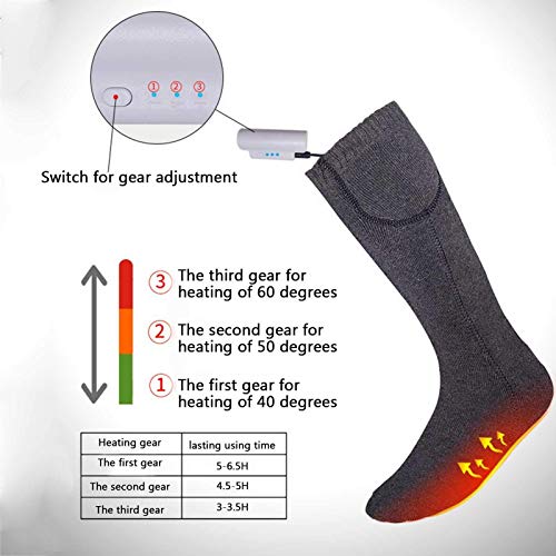 ?? -Zacht en ademend isolatiemateriaal: de verwarmingssokken zijn gemaakt van hoogwaardige katoenvezel, zacht en absorberend, sneldrogend, ademend en sneldrogend elastisch. Isolerende materialen kunnen je voorzien van veilige sokken die je voeten warm en comfortabel houden in koude winters.